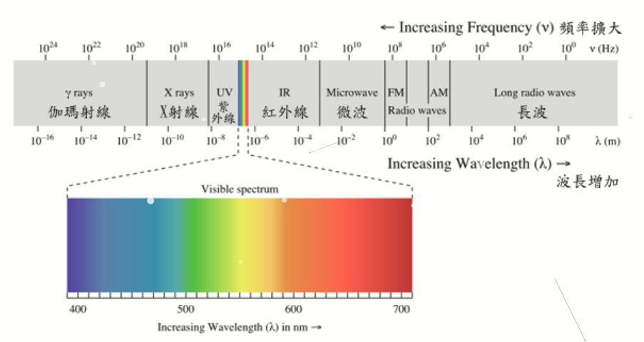 人肉眼可以識別感知到的部分,只有電磁波譜中的可見光,可見光譜沒有精確的范圍,正是因為各種光的波長不同,我們才能看到不同的顏色。大部分人的眼睛可以感知的電磁波的頻率在380~750THz,波長在780~400nm之間,但還有一些人能夠感知到頻率大約在340~790THz,波長大約在880~380nm之間的電磁波。 光的波長范圍