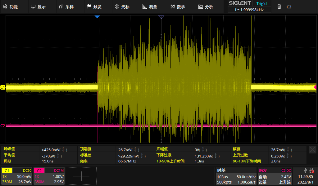 Balance the detector noise(峰峰值17.33mV)